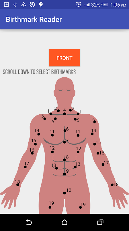 Dit is een voorspelling app die je karakter, toekomstig leven, geluk en nog veel meer, op basis van de moedervlekken (Moles) op het lichaam onthult. De enige app en de beste tot nu toe om de toekomst te voorspellen van de moedervlekken.