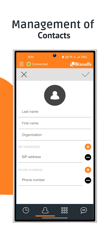 Bizcalls vereenvoudigt het beheer van SIP-accounts, waardoor gebruikers naadloos meerdere accounts kunnen beheren binnen één enkele applicatie. Met onze gebruiksvriendelijke interface is het schakelen tussen accounts probleemloos, waardoor ononderbroken communicatie wordt gegarandeerd. Onze innovatieve 'nooit-slaap'-functie garandeert 24 uur per dag connectiviteit, waardoor gemiste oproepen worden geëlimineerd. Ontdek geavanceerde configuratieopties en gepersonaliseerde instellingen die zijn afgestemd op uw zakelijke behoeften. Download Bizcalls nu en verbeter uw SIP-communicatie-ervaring.