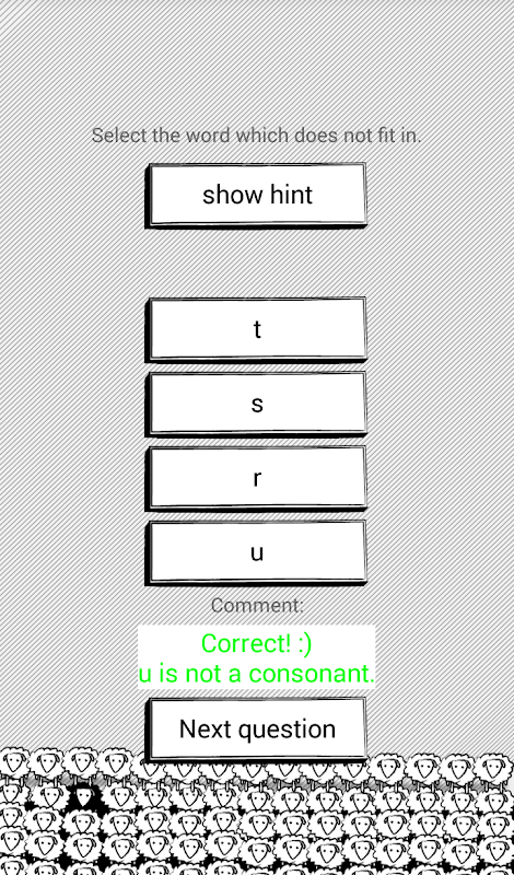 Schwarzes Schaf ist eine hoffentlich kurzweilige App, in der es darum geht, das Wort zu finden, das nicht zu den anderen passt: Es werden jeweils vier Begriffe gezeigt. Einer davon unterscheidet sich thematisch, durch eine Eigenschaft oder Ähnlichem von den anderen. Ist man sich unsicher, kann man sich einen kleinen Tipp (meist das Themengebiet) anzeigen lassen. Die Beispiele werden zunehmend schwieriger.