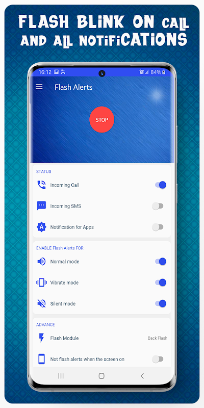 Blink Flash on call, the app will allow you to blink the Mobile torch phone flashlight camera whenever you receive a phone call or SMS text or other notifications. This feature of Flash on-call can increase the convenience of the user or help the user with a disability.