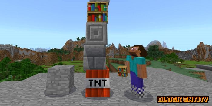 Block Entity Addon MCPE A block entity is basically a block which behaves similar to a mob except that it can be used as a more fluid building block. You can push it around, change its size and skin as well as other things. It’s actually more realistic than the normal blocks as it is affected by gravity which isn’t the case for most normal blocks.