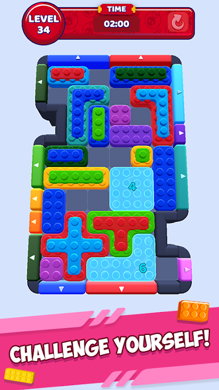 Denk jij dat jij het in je hebt om het bord leeg te maken? Schuif de kleurrijke blokken naar de bijpassende uitgangen en maak ruimte vrij! Elk niveau brengt nieuwe obstakels met zich mee die je logica en strategie op de proef zullen stellen.