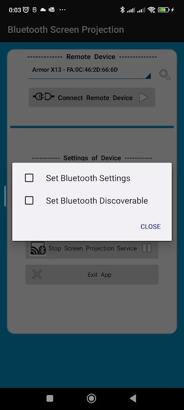 Demo-applicatie om het scherm van een ander extern apparaat via Bluetooth te bekijken