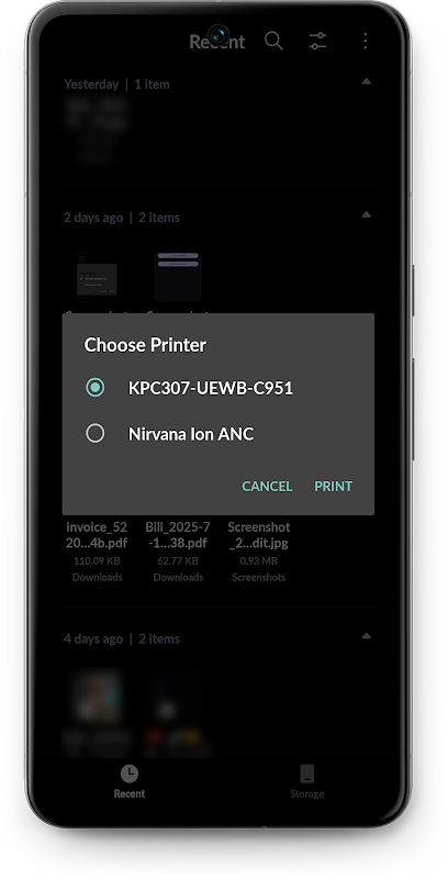 Detecteert en toont automatisch al uw gekoppelde Bluetooth-printers. Tik om te selecteren.