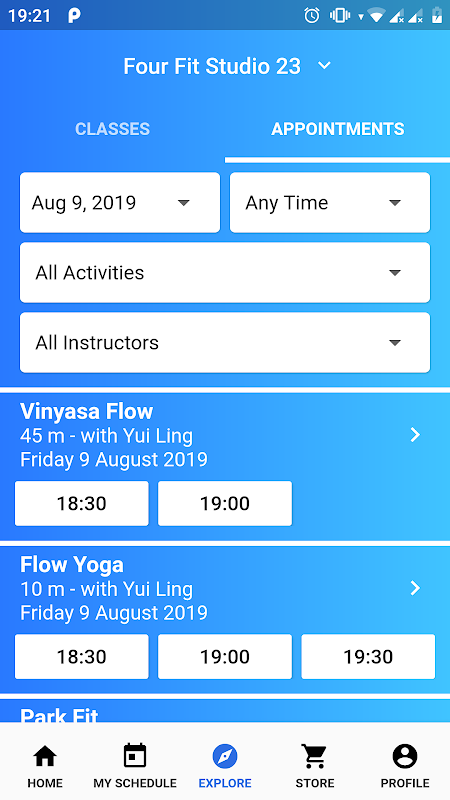 Zodra u uw telefoonnummer en e-mailadres hebt ingevoerd, haalt de app uw aankomende boekingen en actieve pakketten op uit de studio waarmee u verbonden bent. Zorg ervoor dat u hetzelfde mobiele telefoonnummer gebruikt als u ze hebt opgegeven, zodat het systeem weet dat u het bent. Als uw telefoonnummer niet kan worden gevonden, controleer dit dan met uw studio/gym/trainer/leraar.
