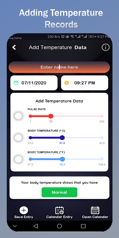 Fever Tracker App for body temperature gives information related to your body temperature and allows the users to store the temperature values. All the stored values can be retrieved at any time and this gives full history of persons records. Body Temperature Thermometer Measure App info allows uses to view the saved records in the form of graphs, this gives proper visual representation of temperature readings of a person.