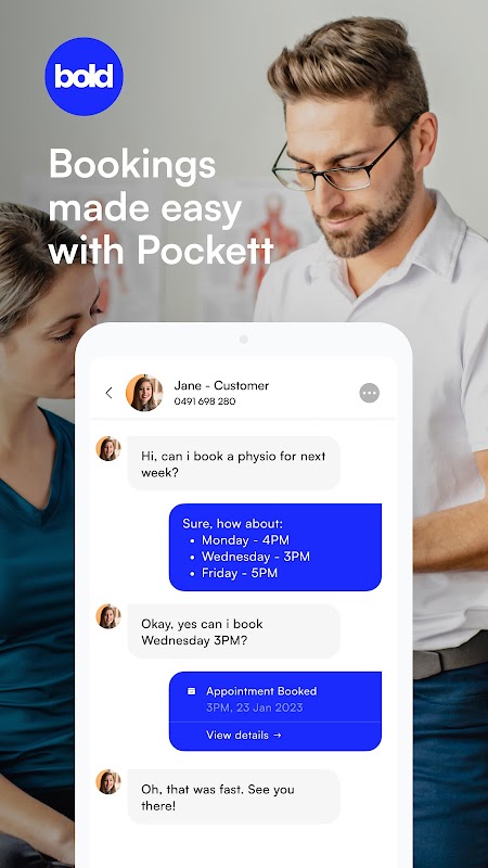 Bold is het alles-in-één berichtenplatform waarmee u leads naar klanten kunt converteren door gebruik te maken van de kracht van sms-berichten. Met behulp van geavanceerde AI-technologie kunt u beoordelingen aanvragen, facturen opmaken en zelfs afspraken met klanten laten boeken via slimme sms-berichten.