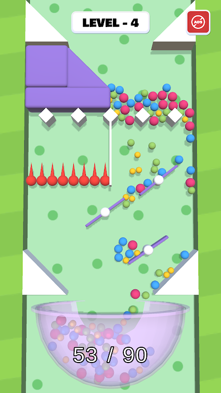 Tik op de Tetris-blokken om ze te vernietigen en maak een weg voor de ballen om erdoorheen te gaan en in de kom te worden gegoten. Zodra het opgegeven aantal ballen in de bowl is verzameld, wordt het level gewist. Er kunnen obstakels en spikes zijn op weg naar de bowl die de ballen zullen vernietigen, dus je moet zoveel mogelijk ballen beschermen tegen barsten.