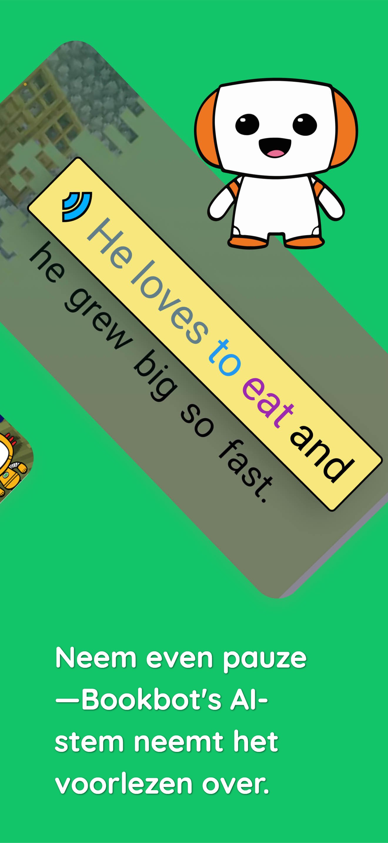 * Voorleesmodus — Laat Bookbot's vriendelijke AI-stem hardop voorlezen wanneer je een pauze nodig hebt, perfect voor verhaaltjes voor het slapengaan.