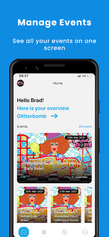 Gebruik de scanner om de QR-codes van klanten te scannen wanneer ze aankomen. Voer marketingcampagnes rechtstreeks vanuit de app naar uw klanten uit. Handmatig klanten zoeken en inchecken bij aankomst.