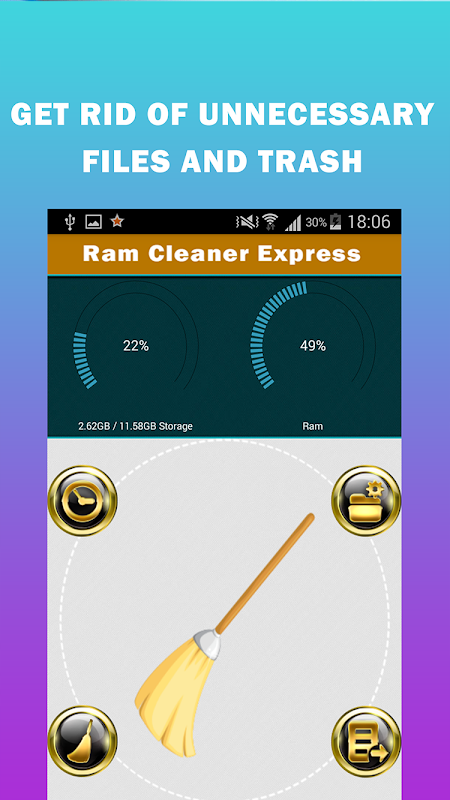 Our developer’s team made the best effort to provide an efficient memory cleaner app, assuring not just to delete the trashy temporal files, but to kill extra process and unneces-sary running applications; giving a root solution to the constant RAM overuse. Many ex-perts advice to boost the ram buying a new card with bigger capacity, but not us! The so-lution is to terminate the excess of processes and clearing as much space as possible to return to life that slow running phone. Our app constantly monitors your device, remove junk to help you reclaim the factory performance of your tablet or Android. Erase browsing history to clear extra unwanted information. Easy to use, and with a fast running access that can be used as a starter widget; this app will make your life easier and will improve the performance or all your devices!