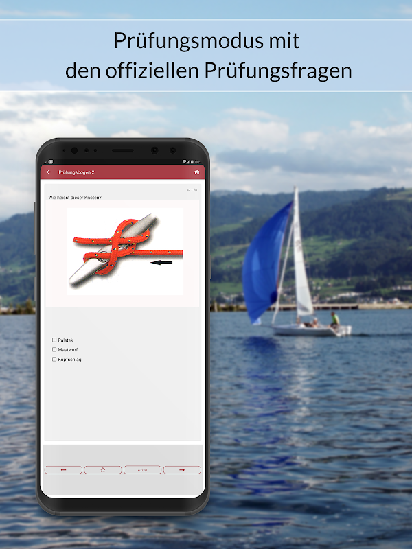 Lernapp voor de voorbereiding op het theoretisch examen voor boot motor en zeilschip cat. A en D met de officiële en de nieuwste examenvragen, evenals de complete naslagwerk "Goede reis op Zwitserse wateren".