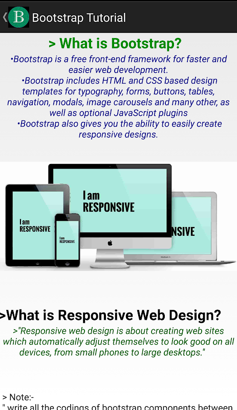 It is an tutorial app which helps you to learn bootstrap offline. It is very light weight app.