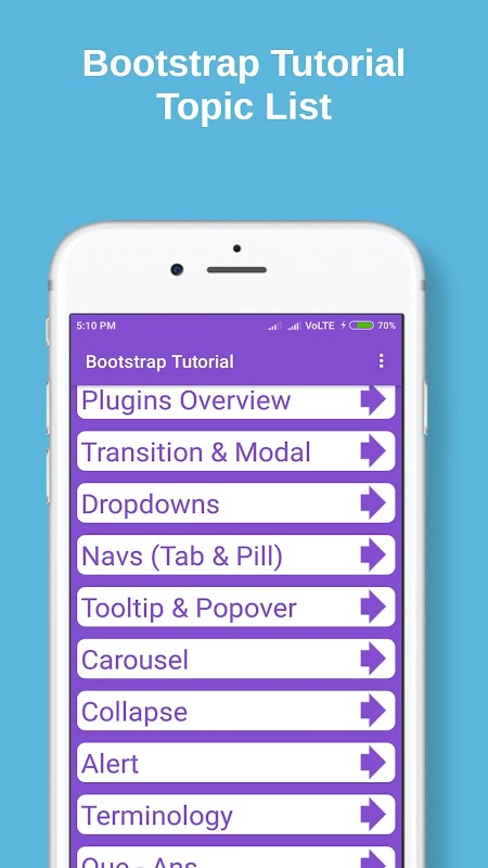 Bootstrap Tutorial app collections of Categories are below and provide All Topic Like,