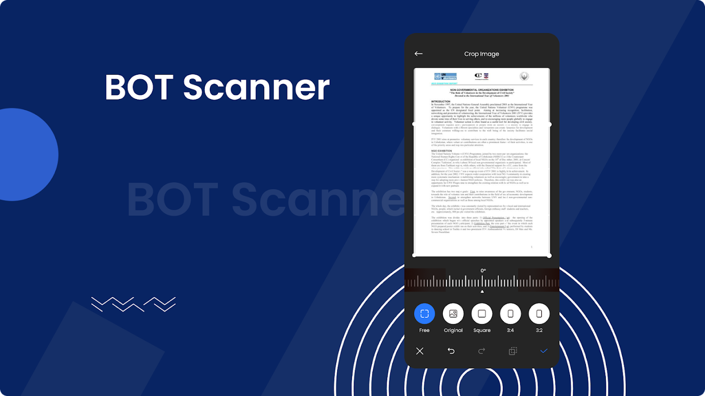 De BOT Scanner-app is het beste voor het scannen van documenten in hoogwaardig PDF-formaat en PNG-uitvoer. Gratis scan van foto's, geschreven documenten en grafisch materiaal en gedrukte documenten. U kunt ook foto's en foto's toevoegen om te scannen vanaf de filmrol door de Doc Scanner-toepassing. Scan binnen enkele seconden snel elk soort document in uw kantoor of thuis, zoals bonnetjes, lesnotities, rekeningen, boekpagina's en alles. Nu is het scannen van documenten niet meer moeilijk, u hoeft alleen maar te installeren en bestanden te scannen. Pdf-scannertoepassing is noodzakelijk voor elke persoon, of u nu een scholier, student, universiteitsstudent, zakenman of een andere persoon bent. BOT Scanner - Free Scan PDF & Image to Text is een zeer eenvoudige en snelste app om foto's in hoge kwaliteit te scannen en direct om te zetten in PDF-, PNG- en JPEG-indeling, zodat u gescande documenten, notities, tijdschriften, artikelen en elk soort papier kunt delen dat je wilt. Deze gratis scanner-app maakt uw kantoorwerk slimmer.