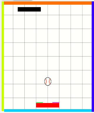 Bouncing ping pong is a game using two paddles swimming left and right at the north and south end within a board of four walls of orange, yellow, dark blue, and teal. Again two small paddles purple and green are there at the southern end of the red paddle. The ping pong ball moves in all directions that needs control of the red paddle to touch the yellow and blue wall to play the game. Take the challenge to win the game while controlling the ball. Click on start to play the game and use the left and right keys to control the red paddle.