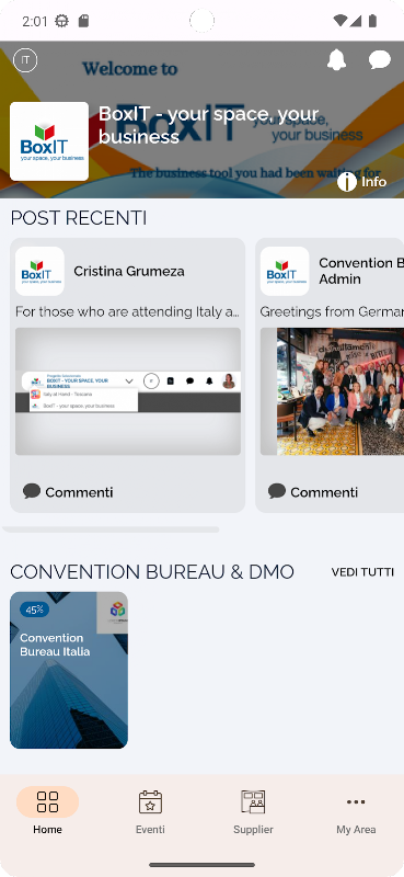 BoxIT is de Convention Bureau Italia-app die is ontworpen om het netwerken en de matchmaking tussen alle professionals die een verandering in hun bedrijf willen doorvoeren, te revolutioneren en te verbeteren.