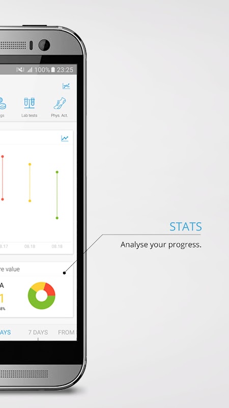 Grafieken en statistieken zullen de huidige resultaten de controle en constante monitoring van uw druk, en dankzij herinneringen je niet moet vergeten over het meten of het nemen van de juiste medicijnen mogelijk te maken.