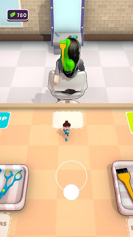 Customers come and wait for you to start stylising their hair. Use scissors, paint brushes and hairtie to serve them and get RICH!