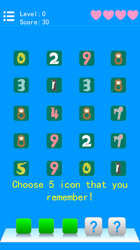 Dit is een zeer eenvoudige interessante spel,oefening en test u van hersenen van geheugencapaciteit zeer heeft helpen.veel mensen is voor zichzelf van de geheugencapaciteit door zorgen,mei mei meestal vaak van praktijk heeft upgrade,was denk ook zichzelf van geheugencapaciteit zeer uitstekende,dat kunt u nu aan pogingen om Xia.tot ziens van geheugencapaciteit wat hoe.u kan en vrienden met te spelen doen eens geheugencapaciteit van uitdaging.