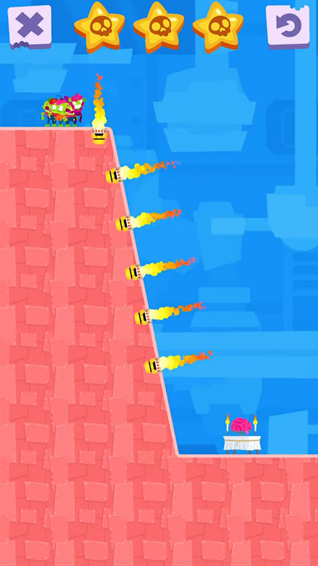 There's brains to chew, but they're placed at the end of the level! Guide the hungry zombie crew through the many hazards of the level so that they could have their much needed grey matter nutritions. Yummy! Levels will grow increasingly more difficult and complicated as you progress down the line. Do you think you have the brains to handle this game? Or are you going to end up just like the rest of the diced up undead?