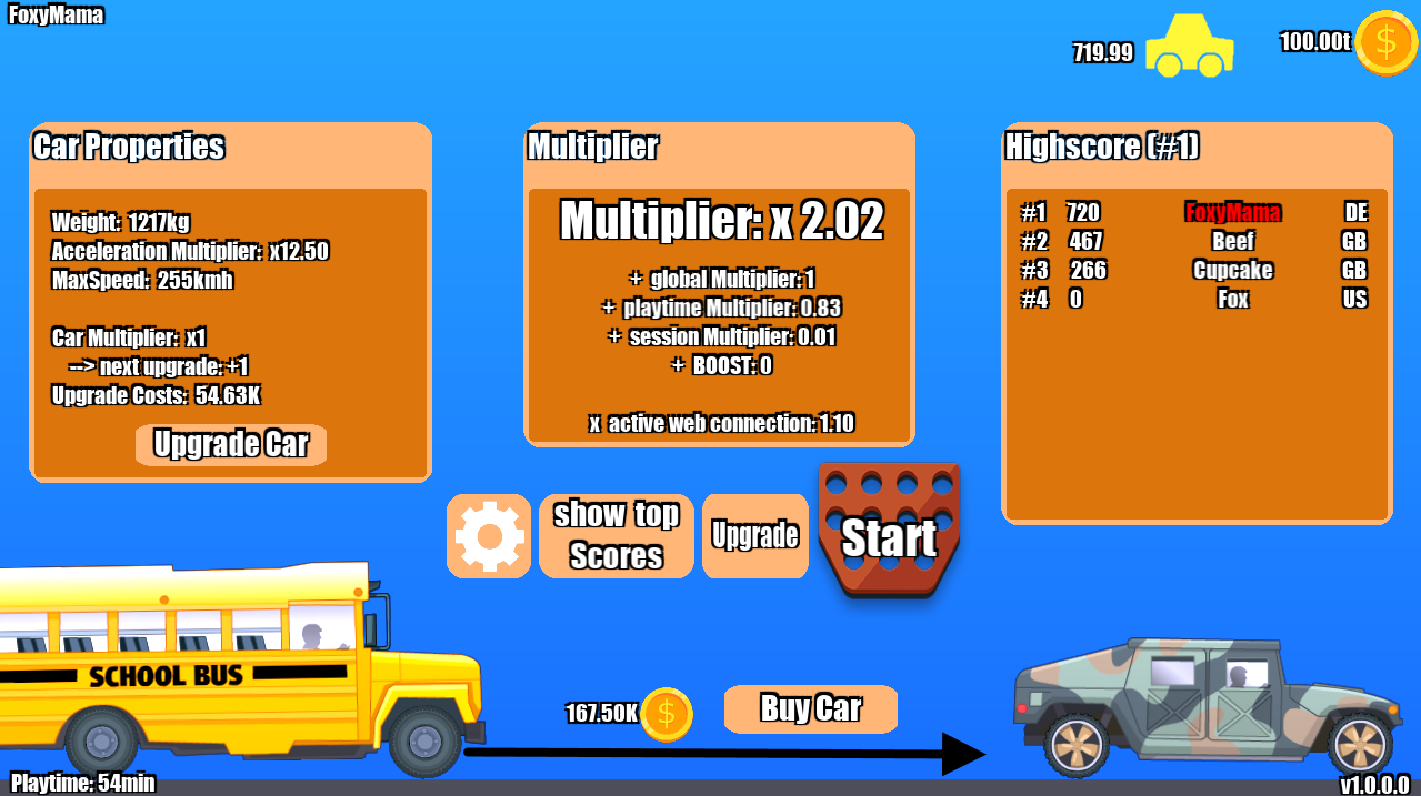 "Dont Crash Against The Wall" is een heel speciale clicker / incrementele en fysische simulatie. Hier klik je NIET op het scherm om punten te krijgen ... NEE je belangrijkste taak is om zo dichtbij te remmen en te parkeren