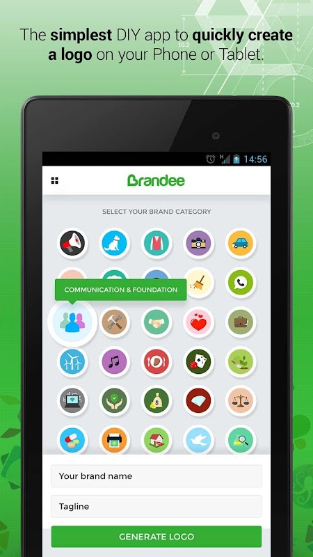 Brandee is de eenvoudigste app om snel een logo op uw telefoon te maken.