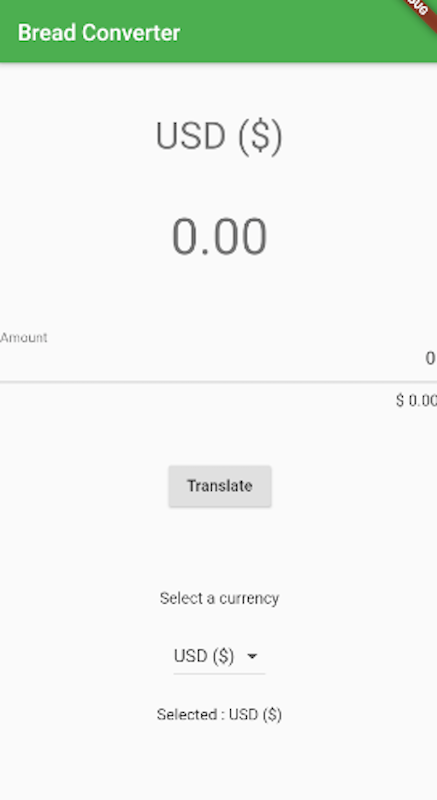 Dit is een fluttertoepassing die USD in verschillende valuta's vertaalt