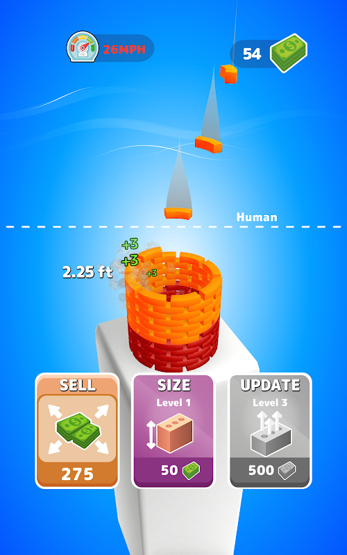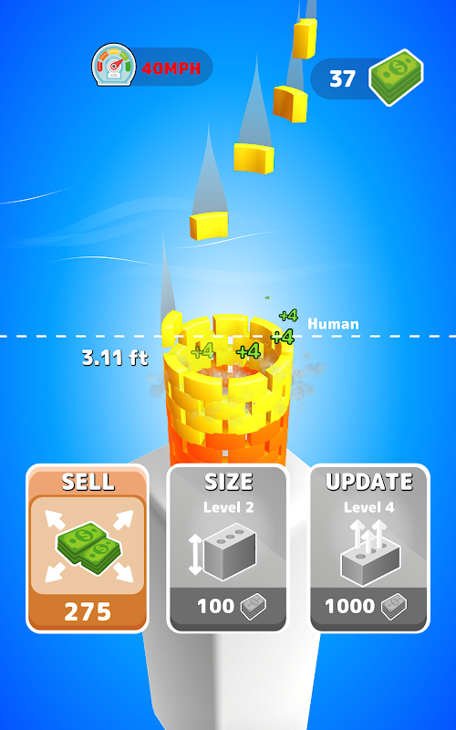 Kies het perfecte moment om je toren te verkopen. Hoe hoger je komt, hoe meer geld je verdient. Maar er is altijd de verleidelijke optie om nog grotere hoogten te bereiken voordat je geld verdient!