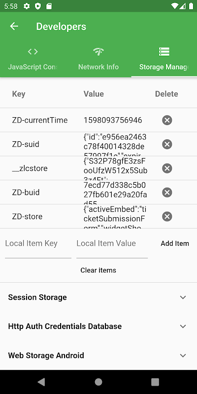 Ontwikkelaarsconsole, waar u JavaScript-code kunt uitvoeren, netwerkinformatie kunt bekijken, de browseropslag kunt beheren, zoals cookies, window.localStorage, enz.;