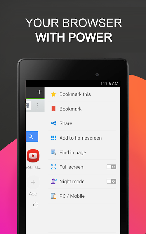"Browser for Android" is a super easy and fast mobile browser. It works on Android phone and tablets and provide powerful features for speed browsing