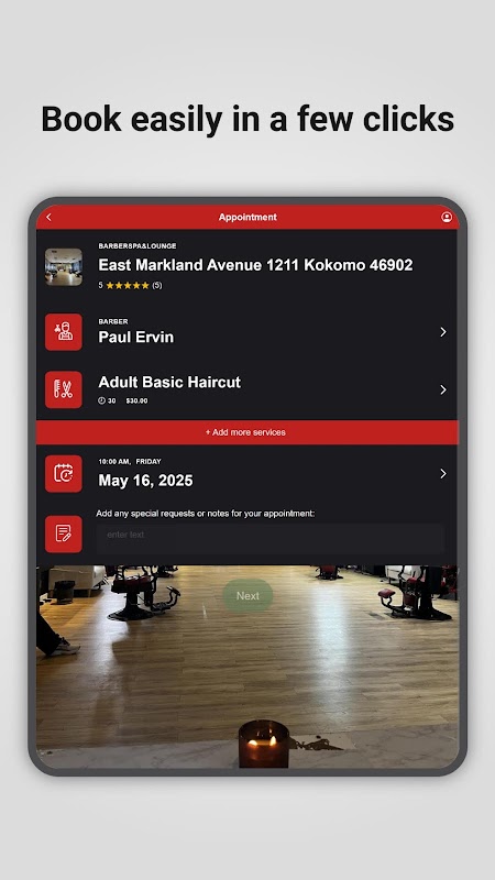 U kunt eenvoudig onze boekingsapp downloaden om uw volgende knip- of verzorgingssessie te plannen. Blader door de beschikbare tijdstippen, kies uw favoriete kapper en boek snel afspraken, allemaal vanuit het gemak van uw telefoon.