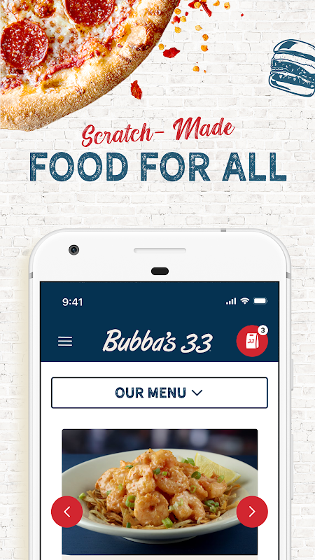 Nu kun je gemakkelijk door het menu bladeren voor je Bubba's 33 favorieten, een locatie bij jou in de buurt zoeken, je naam aan de wachtlijst toevoegen en nog veel meer.
