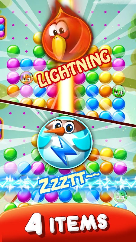 Popping bubbles and cute birds will entertain you!