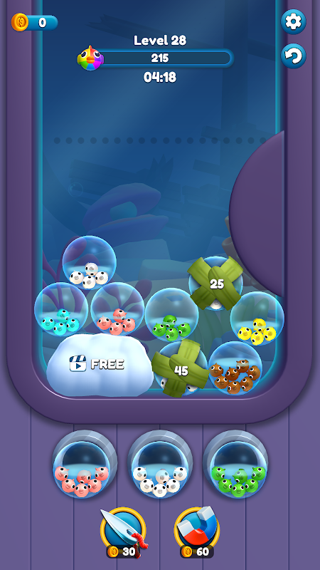 Sorteer bubbels om de leveldoelen te halen! Vermijd de bovenste 'faallijn'.