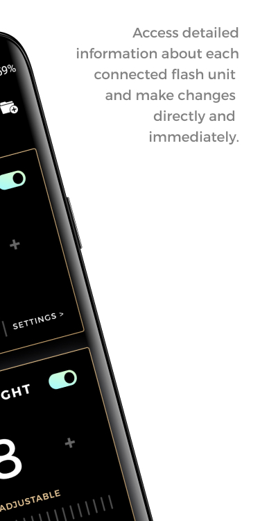 Gebruik de HUB-afstandsbediening om de flitsers van Paul C. Buff, Inc. in uw opstelling te vinden. Zodra u deze aan uw opstelling hebt toegevoegd, kunt u het vermogen van zowel de flitser als de instellamp regelen, deze rechtstreeks vanaf uw telefoon in- en uitschakelen en uw instellingen opslaan voor toekomstig gebruik.
