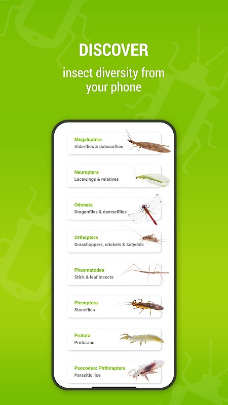 Leer hoe u grote insectengroepen kunt identificeren door onderscheidende lichaamskenmerken te herkennen die prachtig worden geïllustreerd in de gids. Verbeter je verzamelvaardigheden met de 'Bug Gear'-functie, voordat je aan je volgende insectenjacht begint.