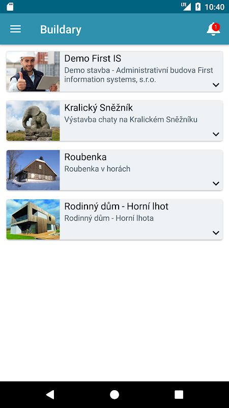 Díky umístění aplikace Buildary v cloudu, jsou informace dostupné kdykoli a odkudkoli, kde je k dispozici Internetové připojení.
