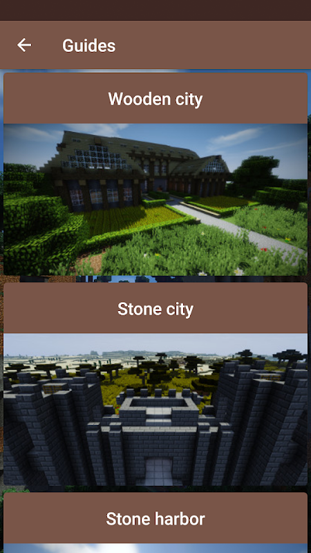 Deze gids bevat de beste gebouwen. Alle gebouwen zijn gemaakt door één auteur en hebben een gemeenschappelijke stijl. Verras je vrienden met je huis of zelfs de hele stad!