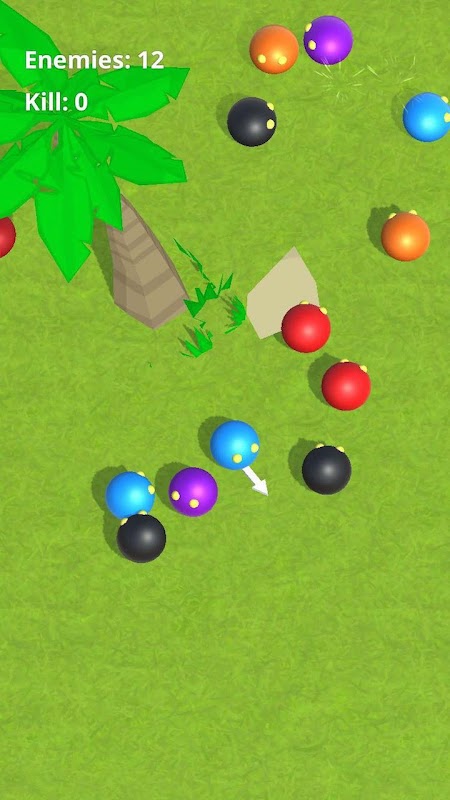 Kick enemy with different color off will make you bigger and stronger.