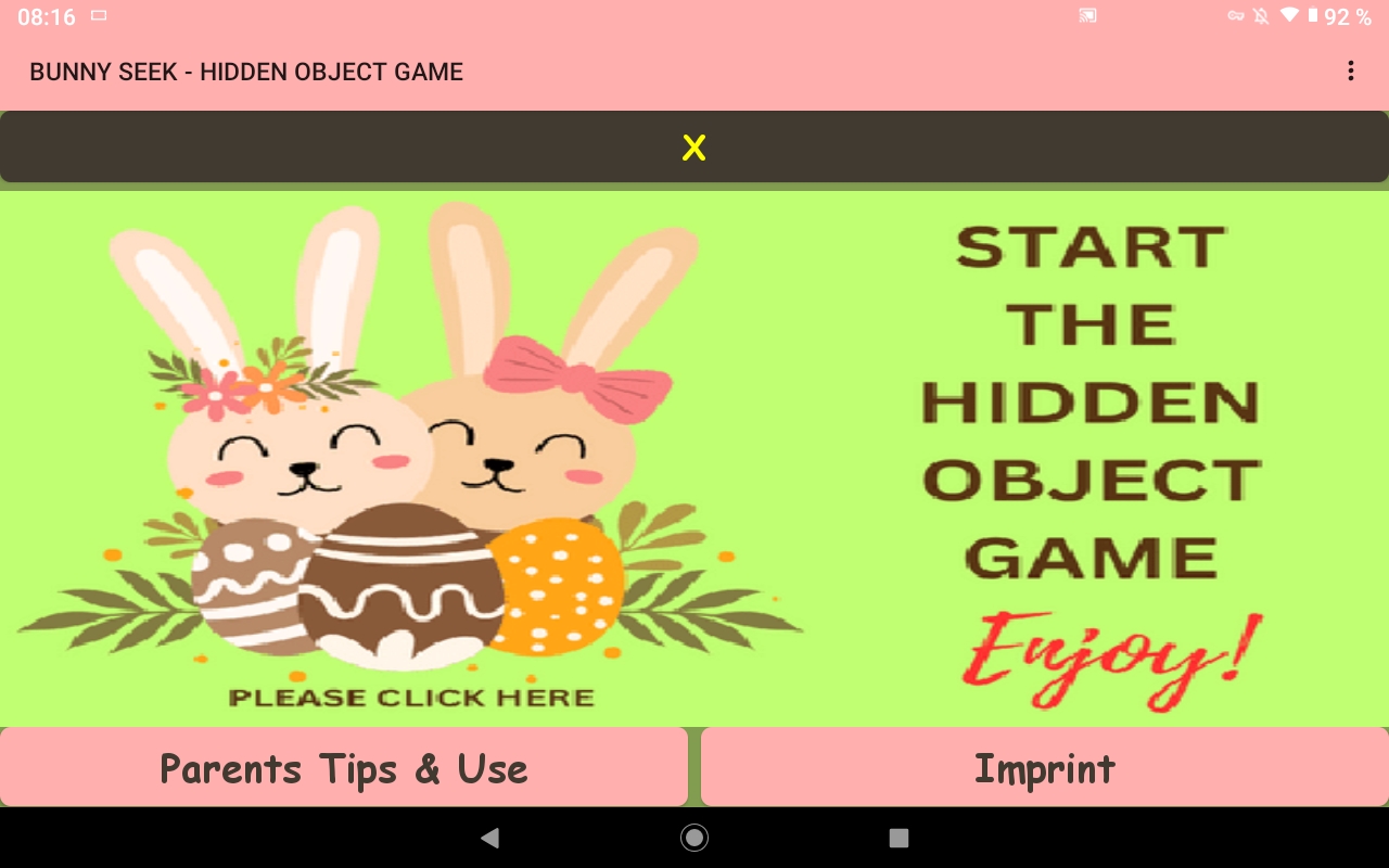 Beste kinderen, lieve ouders, het paasspel met verborgen voorwerpen is het perfecte spel voor uw kinderen tijdens Pasen. De app bevat ook een schilderdoek om kleurplaten te maken met paasmotieven zoals konijntjes, paaseieren, paasbloemen en meer. Dit is een offline spel.