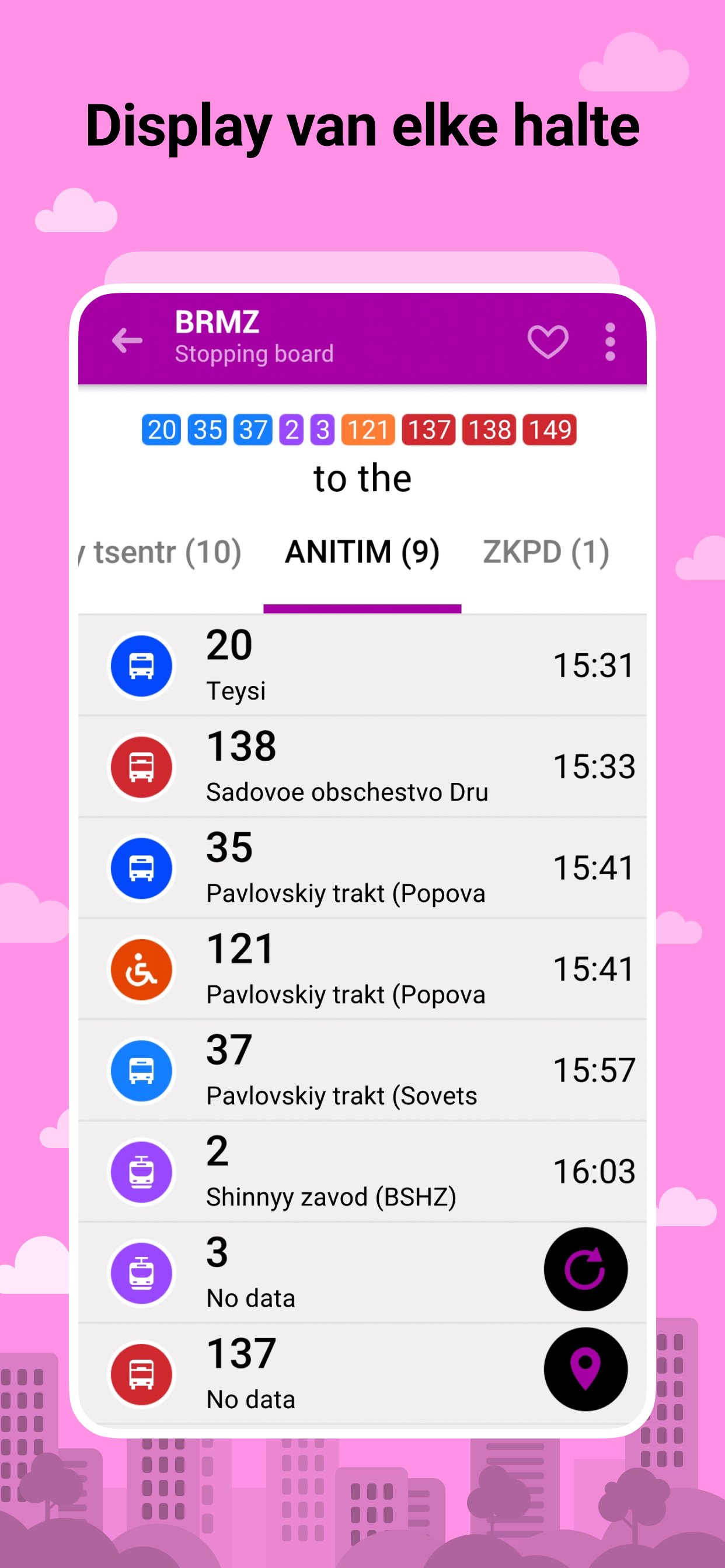 🚎 Volgen van verschillende soorten vervoer: bussen, trolleybussen, trams, minibusjes (voor sommige steden).