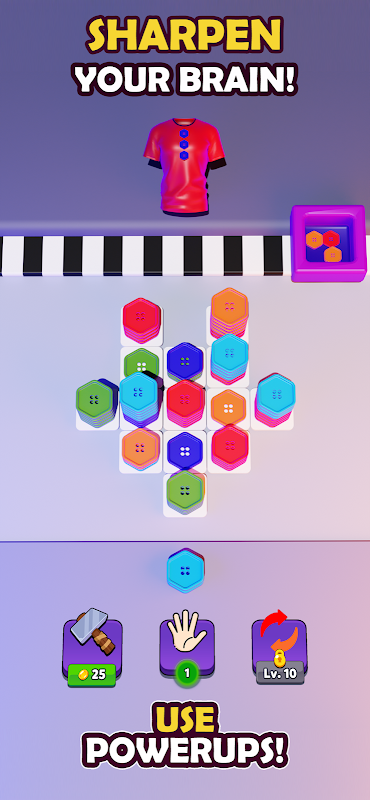 Button Sort biedt een heerlijke mix van puzzeluitdagingen, strategische matching en een bevredigende samenvoegervaring. Betrek je geest met stimulerende hersenspellen waarbij je slimme puzzels moet oplossen en logische manoeuvres moet uitvoeren, waardoor het een ideale keuze is voor mensen die op zoek zijn naar een mentale training!