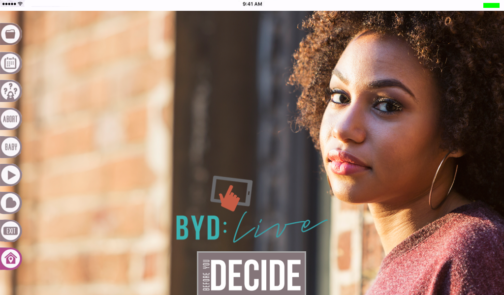 BYD Live is een Android-tablet aanpassing van Care Net voordat u besluit het tijdschrift, de belangrijkste bron voor vrouwen en mannen worden geconfronteerd met de zwangerschap beslissingen te helpen.