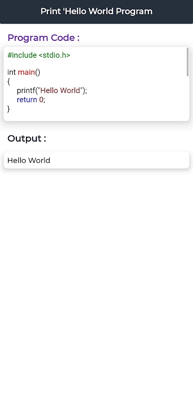 Deze applicatie is in het Engels, legt alle dingen heel duidelijk uit met eenvoudige tekst zodat iedereen het kan begrijpen. Het vereist geen deskundige kennis van programmeren, je leert de C-programmeertaal van de basis tot geavanceerd met voorbeelden.