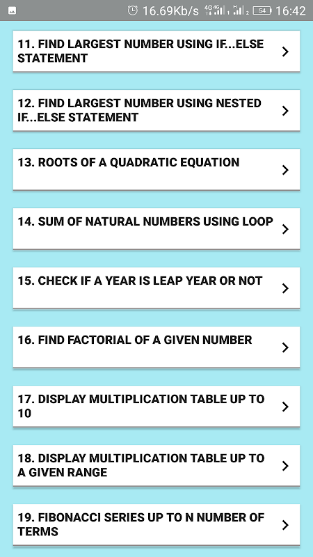 C ++ -programma's zullen studenten en nieuwelingen helpen die op zoek zijn naar een baan of die examen hebben gedaan op C ++. Het is ook handig voor programmeurs die hun C ++ programmeertaal willen bijwerken. In deze app krijg je de meer dan 100 C ++ -programma's en uitvoer ook.