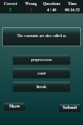 This C++ Programming testing app has been designed in the best possible manner so that the user can constantly improve his/her knowledge about the subject. This C++ Programming testing application suits for all lower, intermediate and higher levels as this application carries a combination of questions for testing the user from the basic level to the highest level. The questions in each level will be displayed randomly.