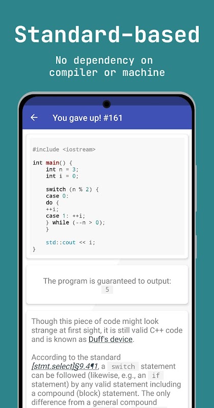 Dit is een Android-implementatie van de testlogica van cppquiz.org met alles