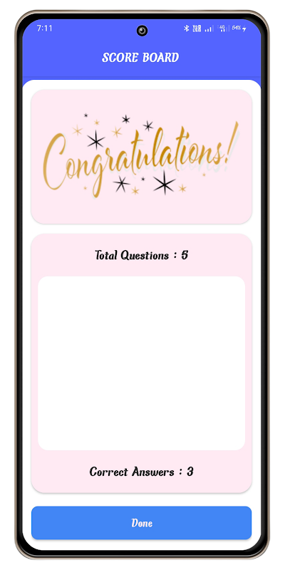 De app heeft een gebruiksvriendelijke interface die gemakkelijk te navigeren is, zodat gebruikers hun voortgang en scores kunnen volgen. De app biedt gebruikers ook de mogelijkheid om te concurreren met vrienden en andere gebruikers voor hoge scores en rankings. De wedstrijdfunctie motiveert gebruikers om hun kennis en begrip van het onderwerp te verbeteren.