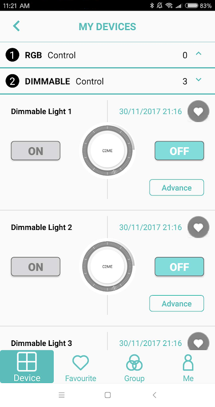 1. Scan to add the C2Me smart switches, dimmable devices;